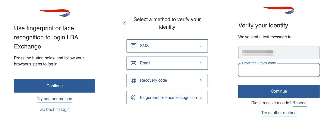 Simply follow the prompts to link the accounts. It will bring you to a sign-in screen to provide your login details with British Airways and you'll receive a few one-time password codes to your phone or email for verification.